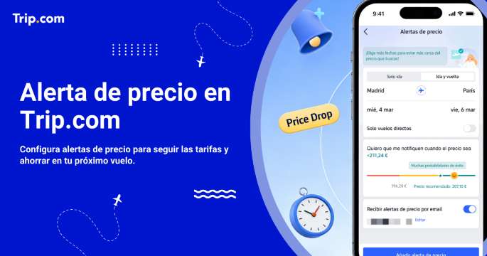 Recuerda que los precios de los vuelos pueden variar en cualquier momento en función de la demanda, las promociones y la disponibilidad de plazas. Gracias a las Alertas de precio de Trip.com y a algunas estrategias de reserva inteligentes, los viajeros pueden encontrar fácilmente ofertas irresistibles. ¡No esperes más! Activa ya las Alertas de precio en la app de Trip.com y empieza a ahorrar en tu próxima aventura.