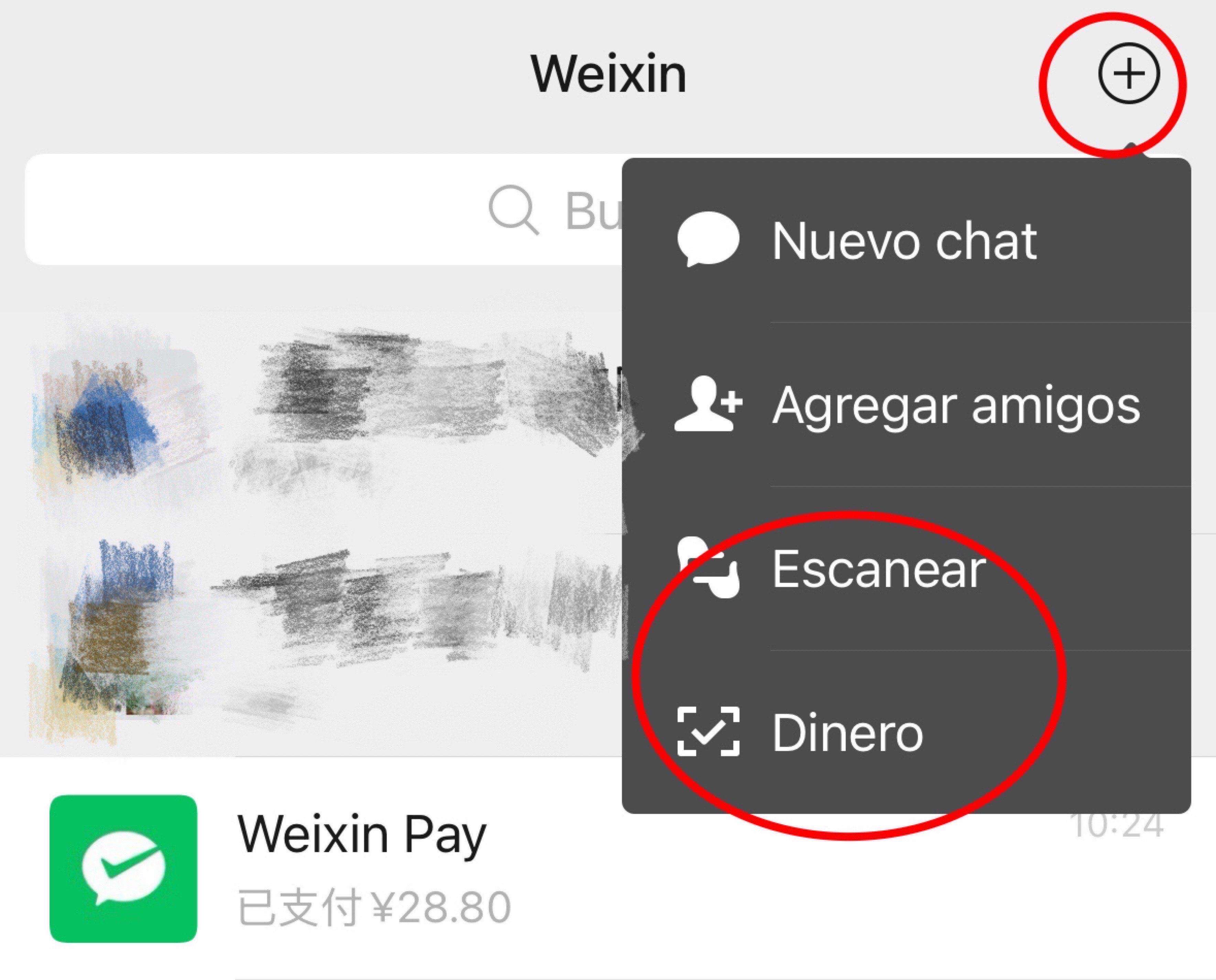 - En la página de chats de WeChat → Haz clic en "+" → Dinero → Código de pago.