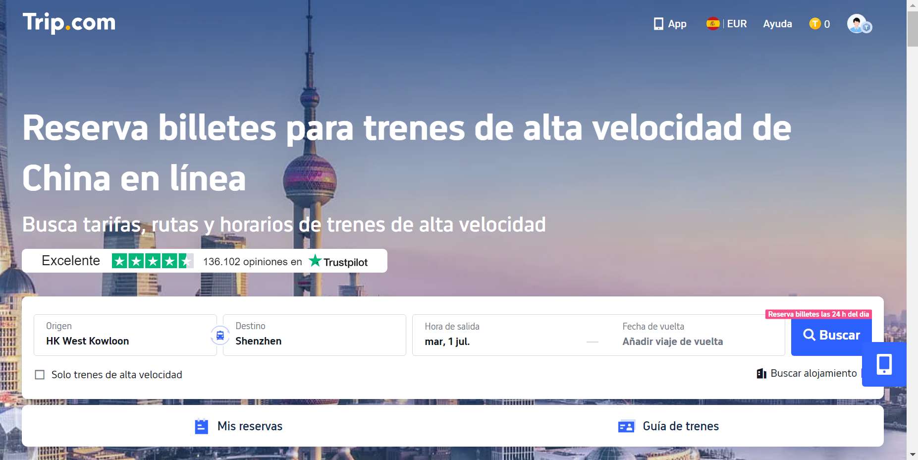 Trip.com | • Soporte completo en inglés | • Tarifa de reserva entre €2 -4 para trenes en China |