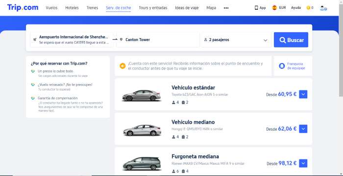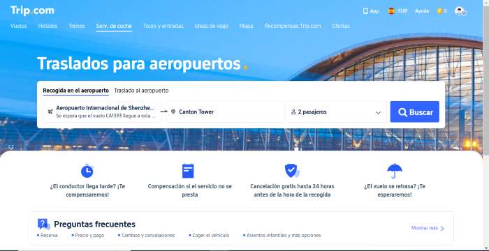 Visita Trip.com y selecciona la opción “Traslado al Aeropuerto”.