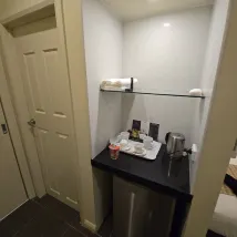 Lots of coffee in cOn counter , nice warm shower and cosy huge bed