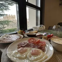 El hotel goza de una excelente ubicación y fue reconstruido a partir de las ruinas de una antigua muralla. Conserva el estilo de los edificios históricos, a la vez que incorpora elementos modernos. Las instalaciones son completas y cómodas, y el desayuno es abundante y variado. ¡Lo recomiendo!