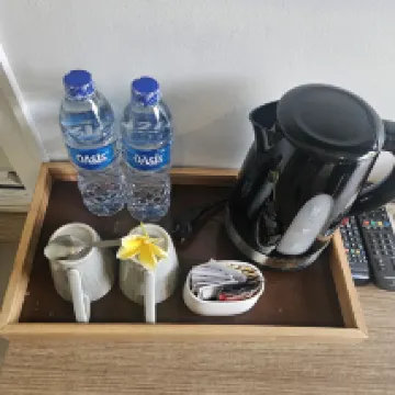 Hotel muy agradable con varias piscinas repartidas por el jardín. La habitación es amplia con una pequeña nevera y calentador de agua. La ducha es muy espaciosa. Tienen un menú de desayuno a elegir entre varias opciones. La persona de la recepción muy amable