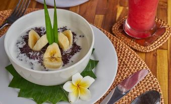 Смешанные эмоции. Останавливались на 2 дня, и в при заселении было обнаружено, что в номере нет вводы. Менеджер сказал, что проблема будет решена в течение часа. При том, что staff предлагал помыться у бассейна, где душ на улице у всех на виду. Спустя пару часов, менеджер пришел и сказал, что все хорошо, настроил воду(она лилась черная, засорились все трубки и х пришлось промывать). После этого мы пошли ужинать и решили помыться перед сном. У жены было день рождению на следующий день. Также попросили убрать номер, и заменить полотенца, потому что, в ходе настройки вводы все стало грязным. Прийдя с ужина, мы спросили, все ли хорошо и нам ответили, да. Прийдя в номер, обнаружили, что снова нет воды. Это сильно расстроило и мы пошли узнавать ситуацию на ресепшен, где сидели девушки и пытались сгладить ситуацию. Позвонив менеджеру мы объяснили, что не приемлемо жить в номере весь день, где нет воды, ты даже не можешь сходить в туалет, потому что не чем смыть. Staff опять отличился и предложил 1,5 литровую бутылку воды для смыва. Поршуавшись мы попросили снять нам другой отель. Время было 23:00. Staff сказали, что обзвонили все вокруг и номеров нет. Мы предложили снять отель, в котором жили прошлые 2 суток. Оказалось есть номер на 1 ночь. И мы договорились, что переночуем в нем, а на следующие сутки вернемся. Так и случилось! На следующий день проблема с водой решилась. Что касается номера Honemoon suite, в нем было сыро, так что кондиционер не требовался и вещи стали мокрыми. Завтрак стандартный. Персонал, в целом молодцы, кроме менеджера. Я понимаю, что проблема касалась всего отеля, но зачем селить людей, когда нет воды в номере, зачем говорить, что все хорошо, и затем мы обнаруживаем, что воды а номере нет (1 раз после бранча, 2 раз после ужина). Жена несколько раз говорила, что у нее день рождения, что будет фотосессия на следующий дающий день, и нужны чистые волосы и тд и это невозможно сделать без воды. Менеджер обещал все урегулировать, но в итоге не смог. И в один момент сказал, окей, простите за ситуацию, с меня тортик на следующий день. Смешно, но даже тут он ничего не сделал. Поэтому в целом, отель не понравился, номер тоже, staff старался, но у них было и мало ресурсов для этого. Хотя они сняли номер переночевать в другом отеле. Тут ложка меда, в бочке дегтя.