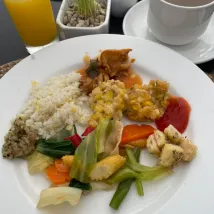 Hay muchas opciones para el desayuno, huevos y tortilla recién hechos a pedido.