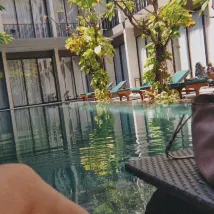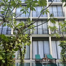 Reservé una habitación con acceso a la piscina, pero después de la primera noche tuve que reservar un alojamiento alternativo porque las habitaciones de la planta baja no están muy insonorizadas, por lo que se puede oír todo el ruido de la calle. Está bien situado, ya que se puede ir andando a la playa de Kuta y a la calle Legian, y crea un ambiente tranquilo en el interior, pero es una pena que el sonido de los bares se filtre por todos lados.