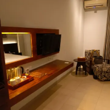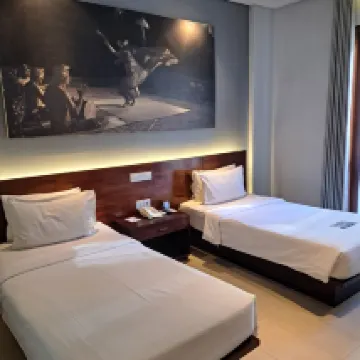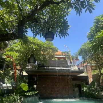 Maravilloso hotel, amplias habitaciones, gran área con jardín interno, 2 piscinas, gimnasio, spa, ubicación conveniente, playa de Legian a poca distancia, cerca de un gran centro comercial. El hotel cuenta con un delicioso desayuno buffet, puedes elegir comida indonesia o europea, jugos, té y café ilimitados durante todo el día. Estaré feliz de volver otra vez. :)