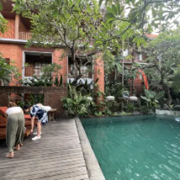 Lindo y pequeño hotel. La hospitalidad balinesa es encantadora. Todo el personal te saluda con una sonrisa y muy amable. La habitación está limpia. El desayuno fue excelente. En nuestro último día pagamos un poco más para tomar el desayuno flotante en la piscina. Muy instagrameable pero no necesario jajaja