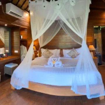 Points positifs - Accueil chaleureux - situé à 1 mn à pied de 3 restaurants et à 5 mn en scooter de bars - Location de scooters sur place - Possibilité de faire une excursion en bateau pour aller nager avec les raies mantas + snorkeling sur 2 spots. C’est le gérant qui vous y emmène et on passe un super moment avec lui. Nous l’avons faite et avons eu la chance de nager avec des raies mantas. Points négatifs - cottage en bois, donc aucune insonorisation sur l’extérieur et entre les cottages Rapport qualité prix top Notre seul regret : ne pas y avoir passé une nuit supplémentaire. Il faut prévoir plus de temps du fait du trajet par le bateau.