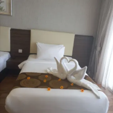 I went to Amerald hotel with my parents last weekend. We booked grand deluxe room. Surprisingly, the room was very spacious and even the bathroom as well. The view also very nice as we can enjoy the beach view from the room and the sunrise also very stunning during our stay. Unfortunately, some of the food that we ordered for our dinner turns out too salty. I hope they can taste first before serve to the guest. Overall, we satisfied with the services and the facilities.
