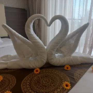 We had a wonderful stay at Amerald Hotel. The room was clean, spacious, very comfortable, and offered a beautiful view. The staff were friendly and helpful throughout our visit. We also enjoyed the private beach, and the free parking was very convenient. The breakfast was wonderful with a nice variety of options to start the day. We even met the manager, Janice Yap, who was very helpful and welcoming.