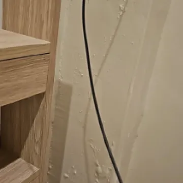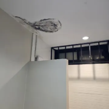 El colchón hace ruido. Basta moverse un poco y siempre se oye un sonido. La habitación está húmeda. Hay filtraciones de agua por la habitación y por la pared de la cabecera de la cama. El baño tiene techo ***** con moho.