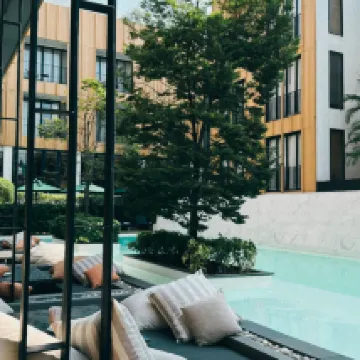 Esta vez nos quedamos en Bangkok con una familia numerosa. Hay 3 habitaciones en el lado izquierdo del libro. Todas son de diferentes tipos en Ganyan. Cada habitación tiene sus propias características. La vista de la piscina es muy hermosa.