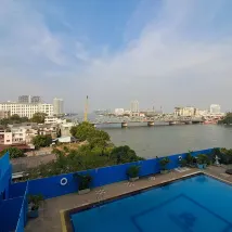 Nos alojamos 3 noches. Elegimos este hotel porque estaba cerca de uno de nuestros destinos previstos. Está lejos del centro de Bangkok, pero se puede llegar en metro (estación a 1 km a pie) o en taxi fluvial. Hay muchos puestos de comida y restaurantes en la calle principal. El hotel es viejo y está desgastado, pero tiene vistas al río, es limpio, cómodo y el personal es amable. El gimnasio es pequeño pero adecuado y la piscina de agua salada. El inconveniente es que estaba turbio.