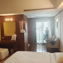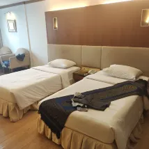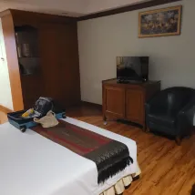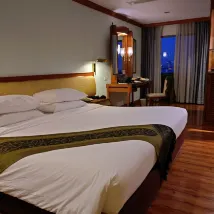 Aunque hubo una pequeña complicación en recepción al momento de realizar el check in, todo salió bien luego de pagar la mejora. Tenga mucho cuidado con los trucos del agente al reservar un hotel. El diseño de este hotel parece tradicional, con Fu Lu Shou en el vestíbulo y la decoración y el diseño son similares a los de los antiguos hoteles estatales. El personal de recepción podría sonreír más y elegir algunas palabras más acogedoras. La ubicación del hotel es aceptable, a 15 minutos andando de la estación de metro, no es difícil de encontrar. El hotel cuenta con dos edificios, además de un amplio aparcamiento y una sala de conferencias enfrente, ideal para acoger reuniones gubernamentales o empresariales de gran envergadura. Los dos puntos de desembarque de cruceros también están dentro del hotel y los billetes se pueden comprar allí mismo. Los cruceros parten a las 19.30h. En el río Chao Phraya, la vista del hotel se encuentra entre dos puentes, el puente Rama VIII y el puente Krung Thong. En la terminal de ferry N16 hay ferries con banderas amarillas y naranjas para recoger pasajeros, lo que hace que el viaje sea cómodo. Buena relación calidad precio. Si tengo la oportunidad de volver a viajar por negocios, reservaré este hotel.