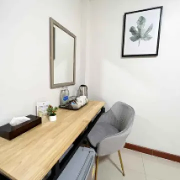 La habitación está limpia. El sistema de tarjeta de acceso brinda tranquilidad sobre la seguridad. No muy lejos de Lotus Express y 7-Eleven a poca distancia. Pero en Lat Krabang Road, frente al hotel, se construirá un puente sobre la intersección. Puede causar atascos y algunas molestias. Pero no fue tan grave. En general, se considera muy adecuado para huéspedes. Además, no está lejos de Suvarnabhumi. La tarifa es de poco más de cien baht.