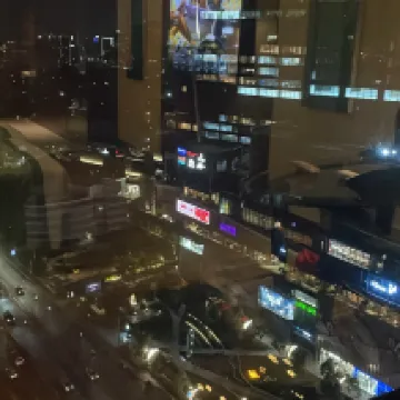 La habitación es espaciosa y tiene bonitas vistas. A menos de 10 minutos andando hay un 7-Eleven, un centro comercial grande, el metro, masajes... ¡todo lo necesario para relajarse y divertirse! Además, el minibar gratuito se repone a diario. Lo único malo es que no pueden entregar pedidos a domicilio y la calle principal de la entrada siempre está congestionada.