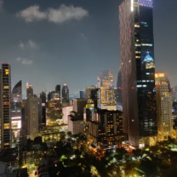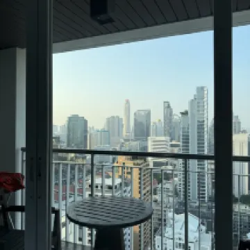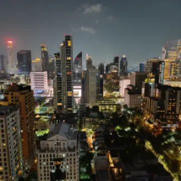 ¡Fabuloso! No lo puedo comparar con el 5, pero todo es de primera para un 4 de ciudad. Al hacer el pedido pedí un piso más alto, me dieron el 33, donde está la piscina, con vista a la ciudad. Por la noche podrás tomar fantásticas fotografías con los rascacielos de fondo. Hay una zona de cocina con todo lo necesario y un dormitorio con vistas. Esta situado cerca de dos estaciones de metro de diferentes líneas, por lo que podrás llegar a cualquier lugar. Cerca está el parque Lumpieri, si tienes tiempo te lo recomiendo. El personal habla bien inglés y es amable. Después de realizar el check out, dejamos nuestro equipaje en la consigna de forma gratuita y paseamos hasta la noche.