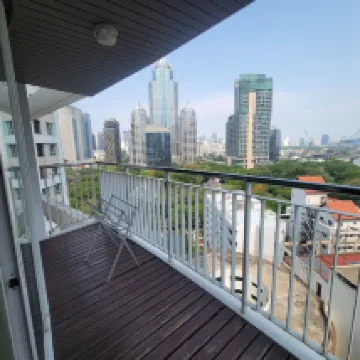 ¡excelente! También está cerca de BTS. Simplemente siga recto a la derecha del hotel y estará a unos 8 minutos. Hay 7-11 por todas partes. Incluso si una chica se olvida de traer maquillaje, acondicionador y pijamas, puede comprarlos. ¡No es caro! ¡Hay masajes y café abajo! ¡La ubicación es genial! La habitación está muy limpia, hay una terraza para secar la ropa y el aire acondicionado es lo suficientemente fresco. Sin embargo, ¡no se proporcionarán cepillos de dientes, pasta de dientes ni peines! ¡Hay una pequeña diferencia entre dar propina para limpiar y no dar propina! ¡El inodoro está un poco resbaladizo y es fácil caerse! Sin embargo, hay champú y loción corporal que ofrece buena calidad. Lo puedo recomendar, cerca de la estación de Chit Lom.