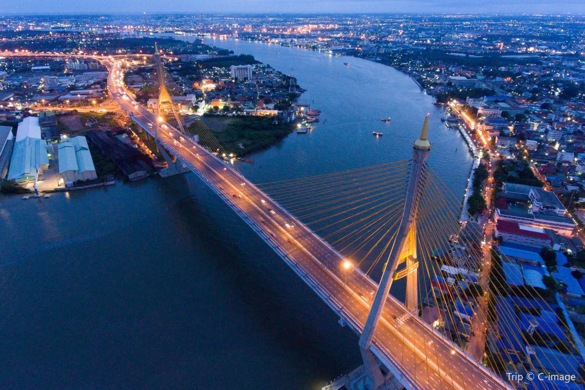 El Aeropuerto Internacional Suvarnabhumi (BKK), situado a unos 30 km al este del centro de Bangkok, gestiona la mayor parte de los vuelos internacionales y numerosas conexiones domésticas; mientras que el Aeropuerto Internacional Don Mueang (DMK), a aproximadamente 24 km al norte del centro, se centra sobre todo en vuelos nacionales y rutas regionales operadas por aerolíneas low-cost.