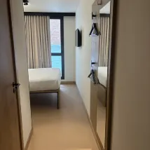 Respuesta del alojamiento: Dear Edwin,Thank you for taking the time to share your feedback following your stay with us at EasyHotel La Sagrera.We’re glad to hear that you found our hotel clean and appreciated our 24-hour front desk service as well as the convenient location near the subway. Your comments about the room size and lack of bedside outlets in the double rooms are noted and appreciated — we are always looking for ways to improve the guest experience.Regarding housekeeping we offer the extra cleaning service only for reservations of 6 nights and more. We hope to have the opportunity to welcome you again in the future!Warm regards,The EasyHotel La Sagrera Team