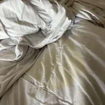 Se nota con sólo mirar la colcha. No he dormido en toda la noche y está demasiado sucia.
