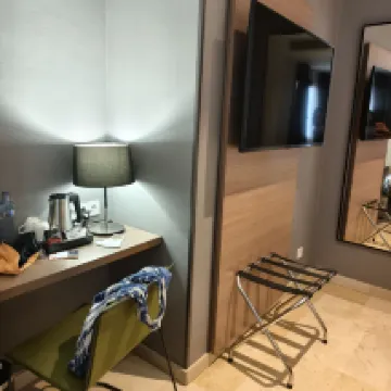 Un hotel práctico, cómodo y limpio, con una recepción amable. El precio fue razonable durante el feriado del Día Nacional. Lo mejor fue la cafetería y el minimercado de la planta baja, que ofrecían desayuno, café, pan, fruta y agua a diario. El servicio no fue tan atento como en los hoteles de cadena nacionales; solo nos dieron dos botellas de agua en la habitación el primer día.