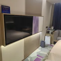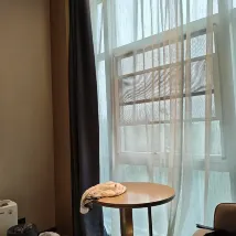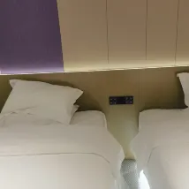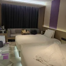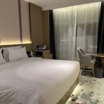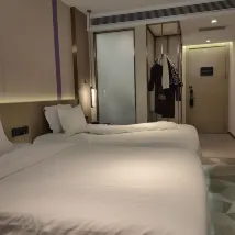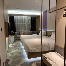 Cuando me registré noté que había un pelo, pero no había otras habitaciones, inmediatamente usé un hervidor de agua caliente para hervir agua y desinfectar la ducha, el lavabo, el inodoro, etc. La habitación es un poco pequeña y el polvo se ve levemente, cada vez que cuelgo la ropa siempre hay polvo ... La actitud del servicio al cliente es buena y entusiasta, y la señora de la limpieza también es muy amable. El hotel está en el tercer piso, todo el piso está cubierto y hay un servicio de entrega de robots para pedir comida. Es fácil llamar a un taxi y recoger pedidos rápidamente, excepto cuando se va al aeropuerto.