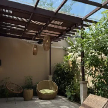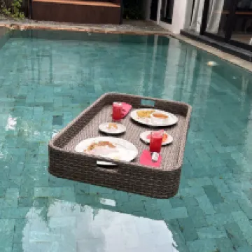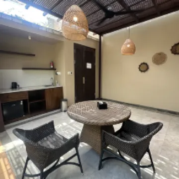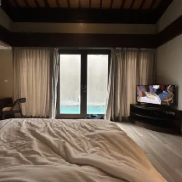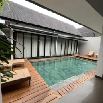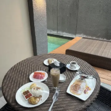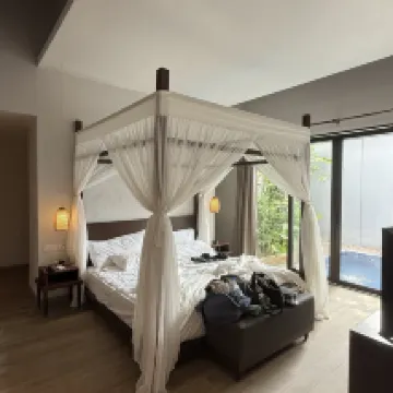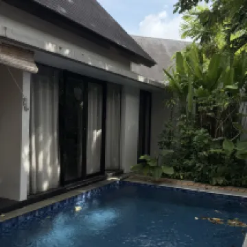Villa is large and spacious, but felt old and not well-maintained. Upon entering the villa, we were immediately greeted by many dead leaves scattered all around the pool deck and floating on the pool. Floor also felt dirty, so we wore our slippers everywhere. The shower is outdoors, which meant we had to bathe with our slippers on. Bathtub’s drainage was not working despite a technician being sent over. With the pool brightly lit at night, we could see many impurities floating around inside + I swam head on into a FROG while trying to enjoy the pool at night. Breakfast was edible but unimpressive, and the latte tasted like water.
