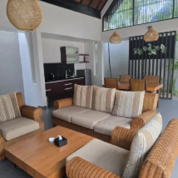 The villa is a bit dated and can get hot as there is only 1 fan outside and and old aircon inside a big bedroom. A bit further from the beach. Also, we have to keep food inside cupboards coz there were monkeys roaming. But the pool water left us itchy so it may not have been treated well. We did not get additional drinking water till check out so make sure u have enough bottled water.