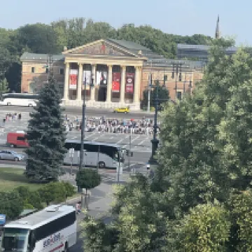 Está ubicado al lado de la Plaza de los Héroes, rodeado de muchos museos y parques, y el transporte es muy conveniente. El desayuno era muy bueno.