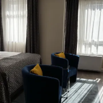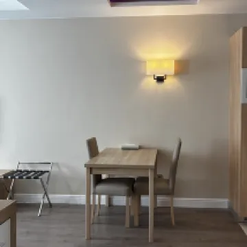 The room was very clean and looked very modern. It also had everything we needed for our stay, including very good internet