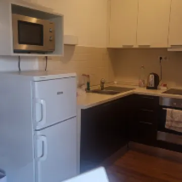 Está bien equipado con cocina y vajilla para cocinar. La habitación es relativamente grande, limpia y ordenada. Hay muchas cosas para comer cerca, incluida comida china y coreana. La sensación general es muy buena. Elegiré quedarme aquí nuevamente. Vale la pena visitar este país si tengo la oportunidad.