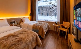住的蠻寬敞乾淨,前台姐姐人很好,點贊!院子裏有漂亮的雪人,適合拍照,暖氣也暖和!
