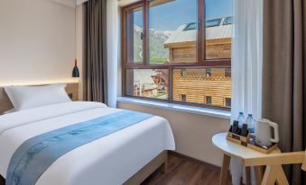 房間出奇的乾淨也温馨,隔着窗户躺在床上就能看到遠山的美景,前台小姐姐態度好,免費升級了一個大床房。超級贊,值得住
