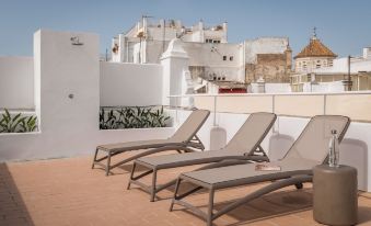 I arrived from Jerez airport train station to Cádiz station in around 35 minutes. The hotel is around 20 mins walk from the station. As it was a hot afternoon and I had luggage, I got a taxi to the hotel for less than €5. The hotel is in a pedestrian only area so the taxi stopped 10 metres away from the hotel entrance. ( The taxi back to the station was around €17 as there is a one way traffic system). Case Gades had a very efficient door passcode entry in place meaning guests can come & go at all hours. On arrival I received a warm & friendly welcome from Enriquez. He explained there were safe lockers to leave luggage and suggested places to visit and eat. I ate at a few of his suggestions and I was not disappointed. City maps were available at reception. There was a comfy room off reception to chill, along with a cold, filtered water station for guests to use. The hotel is very clean, & smart: all staff I met were friendly. It retains some lovely stone wall features and has lifts or stairs to all upper floors. I think there are just 18 rooms. The whole place looked very sleek and fresh. I upgraded the room which had a Juliette balcony and shutters. It looked over the cobbled narrows street below. There was a large, comfortable bed with good firm pillows and fresh linens. There was adequate hanging space for a few days stay, coffee & kettle was provided along with filtered water in the fridge which was replaced daily. The en-suite was smart & spacious for a city hotel, with large shower and sink, soft white towels, hairdryer and toiletries. A clothes steamer was also provided. There was no room safe so I used the downstairs lockers. On the fourth floor is a rooftop terrace with a few loungers and a comfy corner seating area. I would have likes to see a few large green plants and perhaps a bistro style table & chairs here but otherwise it was a very acceptable place to chill with a book. I would recommend this Cádiz city hotel: clean, welcoming with cafes, restaurants, bakery and supermarket on the doorstep along with various independent shops and sights close by.