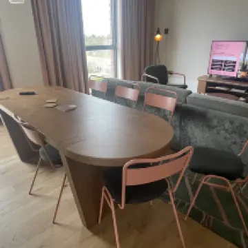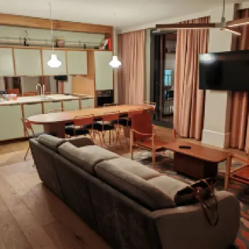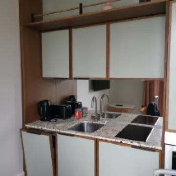 El hotel está limpio y las habitaciones son grandes. La cocina está totalmente equipada: horno, frigorífico, vajilla, placa de inducción y lavavajillas. Hay una lavadora en la habitación para que no tengas que compartirla con otras personas. El televisor es completamente funcional y se puede usar para ver YouTube y al mismo tiempo tiene buena calidad de imagen. El personal del hotel fue cortés y amable. En dos ocasiones hubo problemas con los electrodomésticos de la habitación y los ayudaron inmediatamente a solucionarlos. El único inconveniente es que el detector de humo de la habitación a menudo se activa por error.