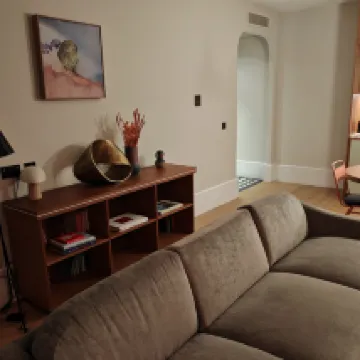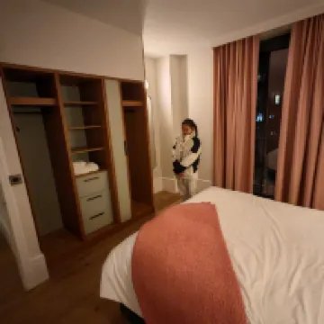Este apartamento está en una zona nueva de Cambridge, a poca distancia en coche de la zona turística central. Parece que hay una parada de autobús al lado, pero no la supe con atención porque conducía solo. El hotel ofrece aparcamiento gratuito para los huéspedes, lo cual es muy bueno. La entrada al aparcamiento subterráneo es un poco mágica, hay que rodearla por el camino lateral. Hay un ascensor en el estacionamiento para registrarse en el piso G. La señora y el hermano de la recepción se mostraron muy entusiasmados y presentaron las instalaciones y usos del hotel. La habitación del apartamento es más grande de lo esperado y la ropa de cama es limpia y cómoda. Hay una gran mesa de comedor en el salón para cenar y trabajar. La cocina está totalmente equipada con todos los utensilios, pero la estufa calienta muy lentamente y requiere paciencia. El horno se siente complicado de usar y no sé cómo usarlo. Como llegué muy tarde, solo hice unos fideos. La cocina abierta tiene una lavadora que combina lavado y secado. Esto fue de gran ayuda. Lavé toda la ropa que había guardado para unos días. El hotel fue muy atento y me proporcionó bloques para lavar la ropa y para lavar los platos. Hay dos baños muy grandes en la suite, lo cual es muy bonito. El baño del dormitorio principal usa una cortina de ducha para separar el área de la ducha. Aunque hay una barrera de agua en el piso, el flujo de agua aún se acumula alrededor del inodoro en la esquina del baño, lo que lo hace un poco vergonzoso. Lo que se puede ver desde la ventana es el apartamento de enfrente y la vista es el edificio. La habitación está dispuesta al final de un largo pasillo, lo que le da una sensación de fitness al entrar y salir. En general, fue una experiencia de alojamiento satisfactoria.