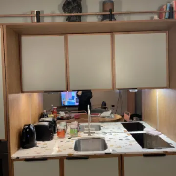 Algunas cosas en la habitación estaban muy, muy polvorientas, como el menú del lavavajillas y las encimeras. Pero en general la estadía fue bastante buena, también es fácil viajar al centro.