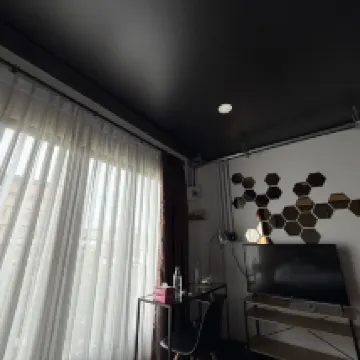 La decoración es de estilo loft. La cama es muy cómoda. Elegimos una king size porque nos gusta dormir con amplitud. El televisor se puede conectar a YouTube, así que puedes escuchar música cómodamente. Si añadieras dos almohadas más, sería genial. Hay una plaza de aparcamiento perfecta. Hay un espacio para fumar para no molestar a los demás.