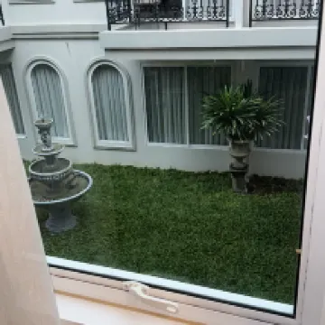 El hotel está súper bien ubicado puedes llegar a todo andando y hay sitios muy interesantes muy cerca. El personal es muy amable. El desayuno si vas temprano 6-8Am está bueno. La habitación era amplia y silenciosa con una bonita vista a un jardín pero al baño le hace falta una reforma, elegí la Junior Suite para utilizar la bañera durante mi estancia y estaba muy desgastada. El hotel es bonito y muy acogedor pero necesita una reforma general. Justo frente al hotel a mano izquierda hay una tienda de masajes espectaculares, literal me hice uno diario durante toda mi estancia.