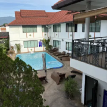 En un callejón, la decoración es bastante pequeña y clara, pero el aire acondicionado es demasiado ruidoso y huele un poco a decoración. Todo lo demás está bastante bien. Es conveniente caminar hasta Tha Pae Gate. Pelos en la toalla de baño.