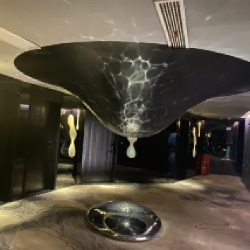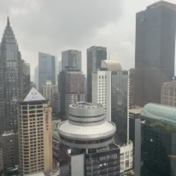 Un hotel en una ubicación excelente con una vista magnífica del centro de Chongqing. Sorprendentemente, la cama redonda era muy cómoda y la tecnología inteligente de luces y persianas funcionaba bien.