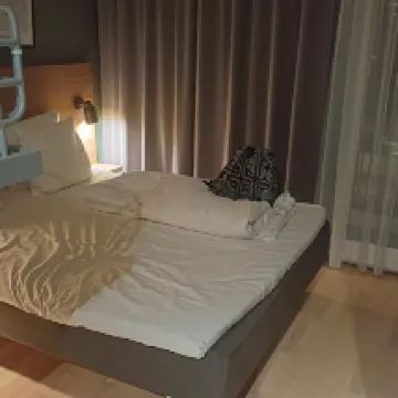 La ubicación es muy céntrica y práctica. La estación de metro y tren regional está justo al lado del hotel. Enfrente también hay un gran supermercado, por si necesita algo. Para acceder a la habitación desde el vestíbulo hay que subir dos escalones. No hay ascensor, lo cual es una gran desventaja para familias con un carrito de bebé e imposible para personas en silla de ruedas.