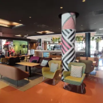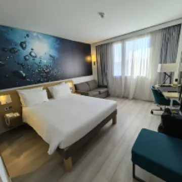 Confortable hotel de la conocida cadena Novotel, no situado en el centro turístico, pero bien comunicado mediante tren de cercanías y metro. Habitaciones modernas y bien equipadas. Muy buen desayuno buffet. El restaurante y bar deportivo de la planta baja es muy popular entre los lugareños los fines de semana.