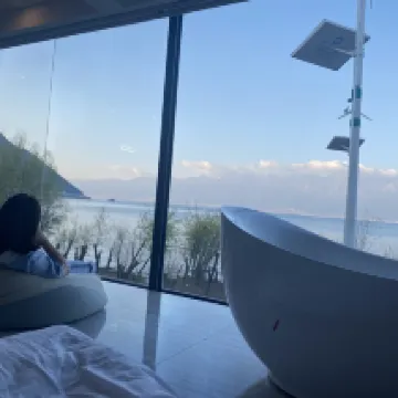 Location in front of Erhai lake. Staff is good and very helpfull. What a strong lady. She help me to carry 20kg luggage upstair. I got upgraded room.
