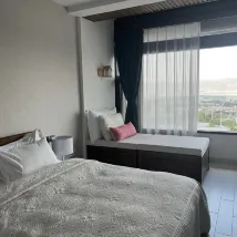 Normalmente no hago comentarios, pero esta vez realmente me sentí muy bien con mi estadía. En primer lugar, los dos chicos de la recepción fueron muy serviciales. El ambiente del hotel es muy bueno. Éramos tres personas compartiendo una habitación e inmediatamente nos ayudaron a agregar artículos de tocador, los artículos en la habitación también son de alta calidad. Regresamos a casa tarde en la noche y no teníamos nada para comer. También fue muy bueno. Platos de carne 38 platos vegetarianos 28 arroz 10. El sabor es comparable al de un hotel. El desayuno se ofrece de forma gratuita. El té de la tarde también es muy bueno. Es simplemente hermoso, por supuesto, puedes verlo abriendo las cortinas de la habitación, pero la vista desde arriba es aún más impactante.