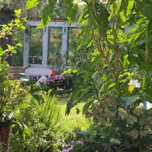 El pequeño jardín del B&B es como entrar en Alicia en el país de las maravillas.