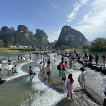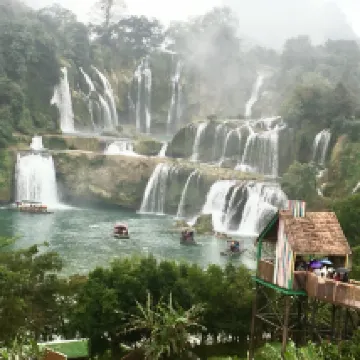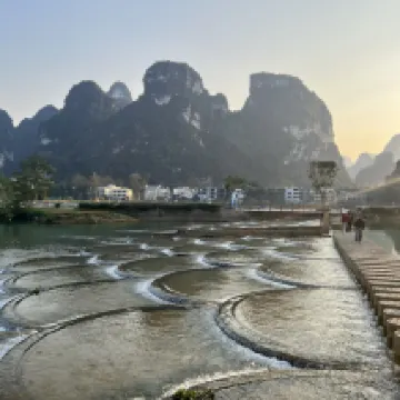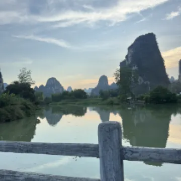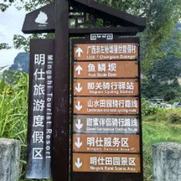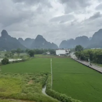 Location of hotel is very convenient for travelers who take the tourist bus from either Chungzuo, Nanning or from Detian waterfalls scenic area. The room we booked had a nice view of the fields and karst mountains. What a beautiful sight to behold indeed. During the day, it can get noisy with all the comings and goings in the village and all around but at night, it was very quiet. The rooftop terrace was very nice and not busy when we were there. Breakfast was enjoyable with steamed buns, corn, soup noodles and boiled sweet potatoes- a healthy start for a very busy day. The very nice lady in charge of breakfast offered us breakfast on our check in day (we arrived at 10:30) and made sure we had enough to eat before sending us off to explore! We had never met a B&B operator who was so caring and generous. On our check out day, even though she was still busy with guests, she rushed out to bid us a fond farewell and a safe onward trip. Front desk and cleaning team were all very friendly, always smiling and helpful. All in all, a very warm and pleasant stay at Mingshi Scenic Area.