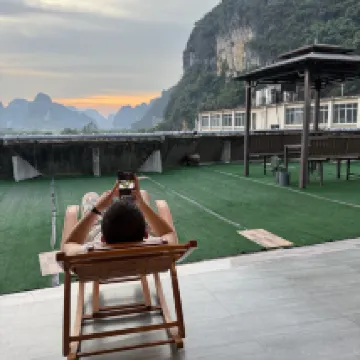 The stay was exceptional! We booked two rooms, both of them were with a great view and spotlessly clean. The rooms were on the last (6th) floor and we had also an access to a beautiful terrace where we could relax and enjoy a stunning view. Most of all we liked the host who was very helpful and kind, he helped us to book a transfer to Chongzuo (260 CIY) and met all our requirements. The breakfast was a typical Chinese one: delicious noodles, eggs, vegetables, steamed rolls. Just a kind of advice is to add more seating facilities, sometimes it's crowded during breakfast. Thank you very much!
